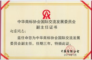 集佳合伙人趙雷律師獲聘中華商標(biāo)協(xié)會(huì)國際交流發(fā)展委員會(huì)副主任