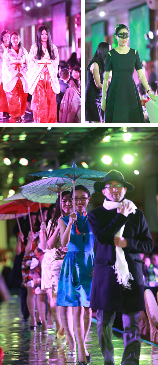 此次年會,各部門的T臺出場方式都別具匠心,顧問部的制服裝,可謂是英姿颯爽,讓人眼前一亮; 財務部組成的“財神爺”團隊,讓人耳目一新;國內電學部身著漢服、訴訟部的旗袍裝,嬌羞的身段,展現了東方女性獨有的魅力;