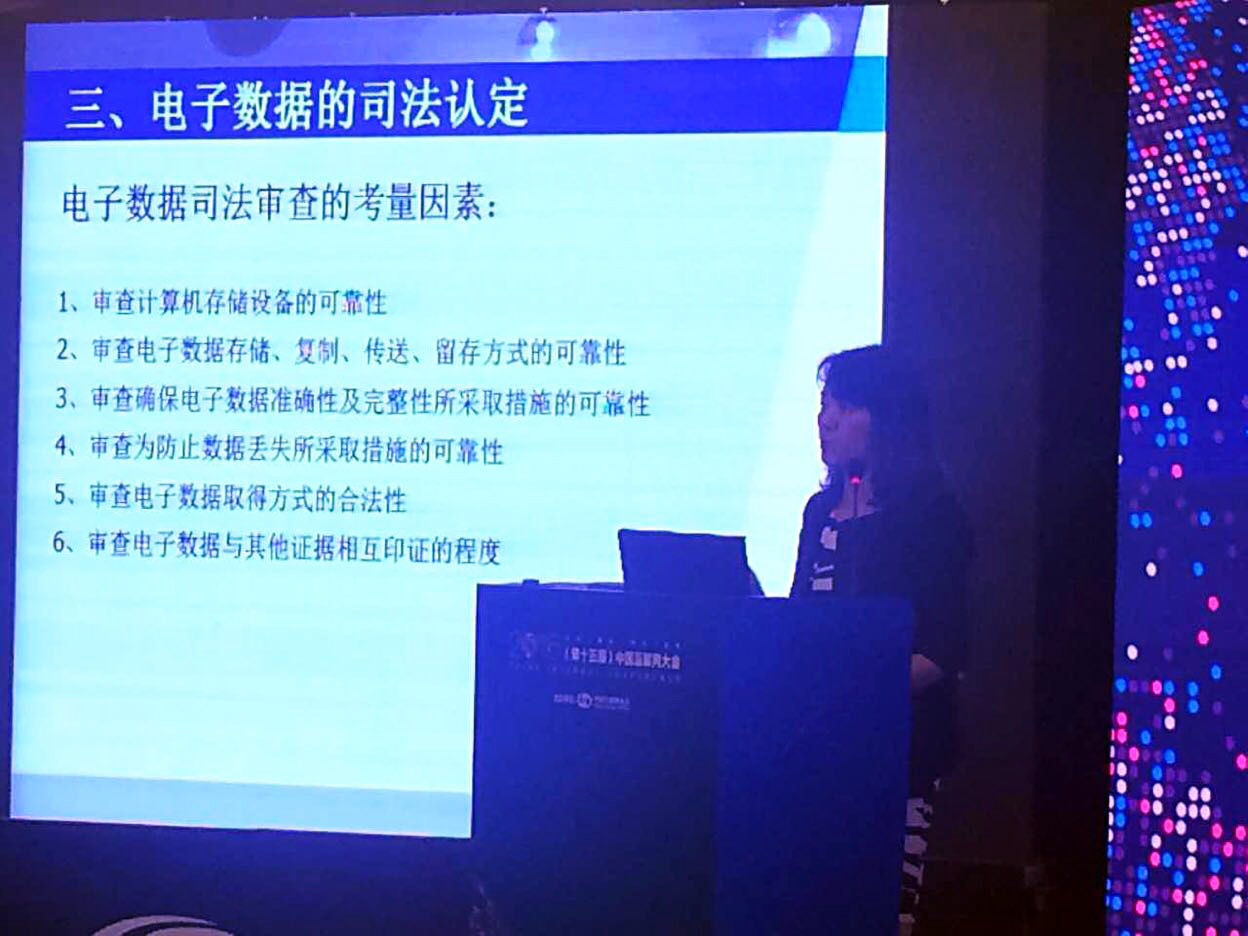 圍繞論壇主題“共責-共治-共生 電子數據護航互聯網法治前行”,周丹丹律師介紹了電子數據的特點、表現形式及保全方式,通過生動的案例對電子數據的認定及司法審查的考量因素進行分析,并對電子數據司法認定目前存在的問題提出了看法及建議。
