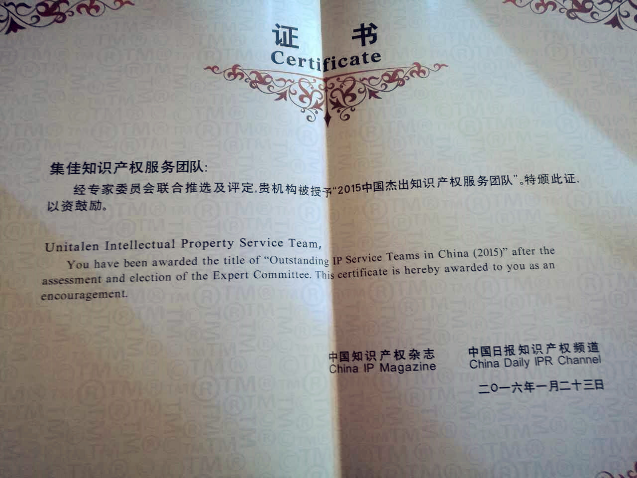 集佳榮獲“2015中國杰出知識產權服務團隊”