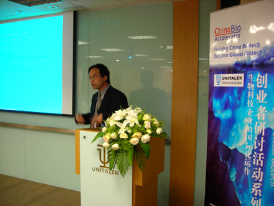 經(jīng)過(guò)十多年的發(fā)展,集佳已經(jīng)和國(guó)內(nèi)多家生物科技企業(yè)建立知識(shí)產(chǎn)權(quán)方面的合作,正因?yàn)槿绱耍珻hinaBio Accelerator選擇了把集佳作為首次活動(dòng)的舉辦地點(diǎn),同時(shí)邀請(qǐng)了在生物技術(shù)領(lǐng)域有著豐富經(jīng)驗(yàn)的知識(shí)產(chǎn)權(quán)專家集佳合伙人劉超博士出席并做演講。出席本次活動(dòng)的嘉賓還有ChinaBio總裁和創(chuàng)建人Greg B. Scott 先生、保諾科技(北京)有限公司CEO Nigel R.A. Beeley博士。他們分別就中國(guó)企業(yè)如何吸引投資者、如何通過(guò)外包降低藥物研發(fā)成本的主題進(jìn)行了精彩的演講。