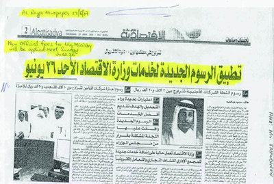 下列為卡塔爾當地報紙對官費上漲一事的公告。