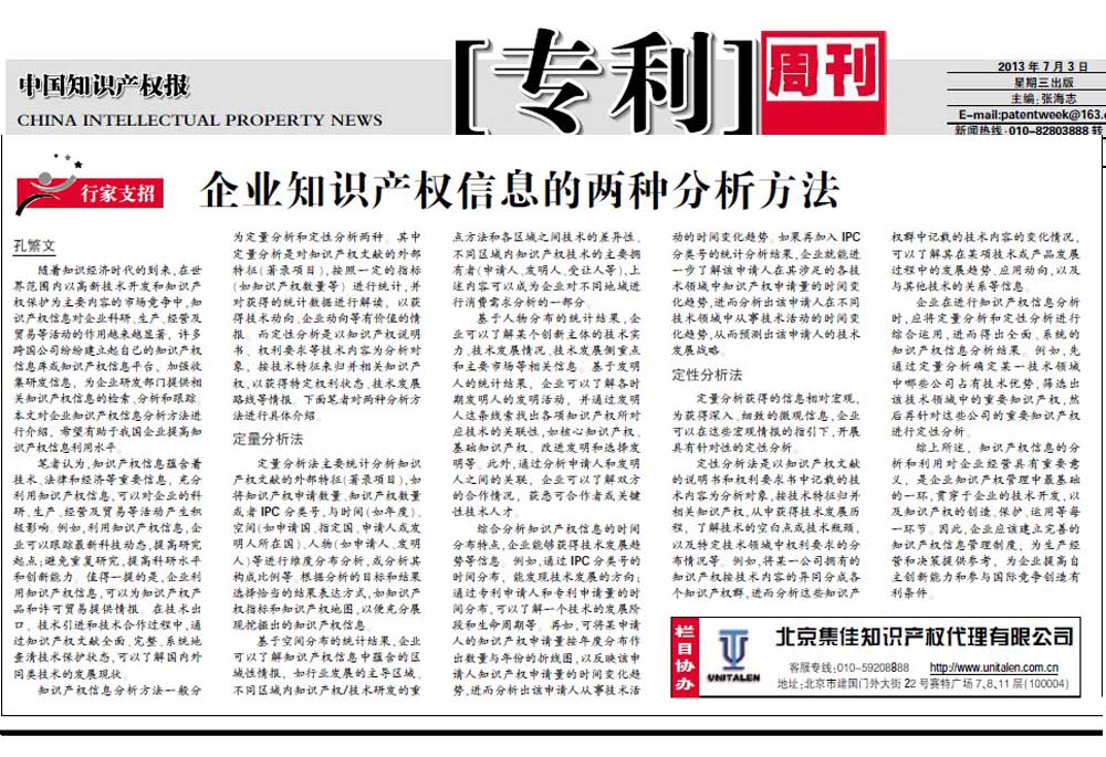 法律聲明 Unitalen Mail Box ?2016 Unitalen Attorneys at Law 版權(quán)所有 集佳知識(shí)產(chǎn)權(quán)代理有限公司 京ICP備11033076號(hào) 京公網(wǎng)安備11010502020670