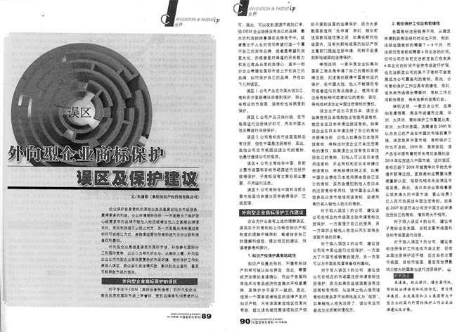 《中國(guó)發(fā)明與專利》:外向型企業(yè)商標(biāo)保護(hù)誤區(qū)及保護(hù)建議