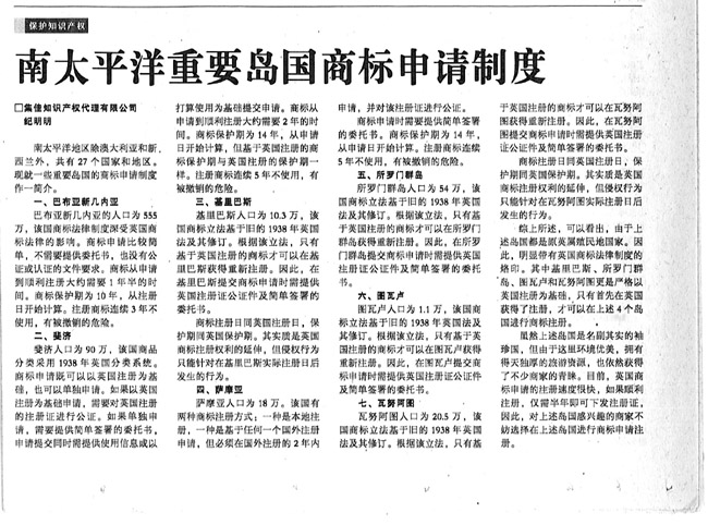 《國際商報》:南太平洋重要島國商標申請制度