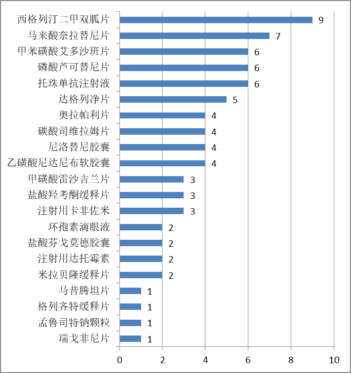 各種藥品所涉及的行政裁決案件的數(shù)量如下所示: