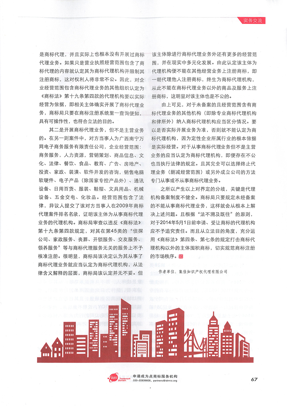 集佳文章《如何界定<商標法>第十九條第四款規定的“代理機構”》在《中華商標》發表