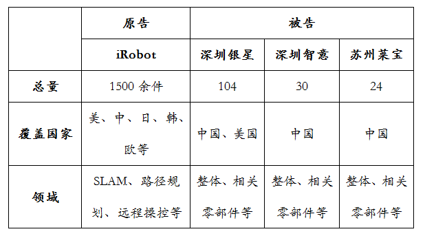 將本案涉及的原告及被告(中國企業(yè))的專利情況進(jìn)行分析,不難看出雙方實(shí)力的巨大差距,iRobot作為全球第一家上市的家用機(jī)器人研發(fā)、生產(chǎn)企業(yè),其在機(jī)器人領(lǐng)域進(jìn)行了多年的深耕,積累了大量的專利申請,通過較為嚴(yán)密的專利組合,形成了較為完善的專利布局。