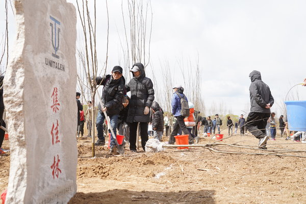 微風輕拂新栽樹,綠綻枝頭滿眼春。經過大家一上午的辛勤勞動,300多棵小樹苗紛紛從樹窩里“站立”起來,放眼望去,一排排新綠迎風傲立,整齊劃一,為光禿禿的農田增添了新綠,傳遞著春的生機與活力。看到自己親手栽下的樹苗已是蔚然成林,大家的疲勞一掃而光,喜悅之情溢于言表。新栽種的苗木在和煦的春風中正在悄悄吐露新芽——這里,將是一片綠色的希望!