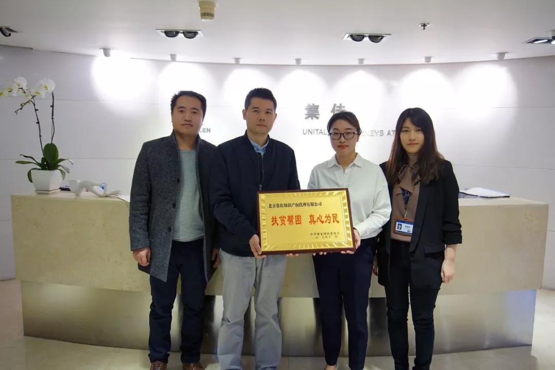 11月2日,中華全國專利代理人協(xié)會副秘書長壽宏與處長姜泓祥專程蒞臨集佳,代表受扶助方將“扶貧幫困,真心為民”牌匾送給集佳,對集佳的公益扶貧之舉給予肯定和認(rèn)可。壽宏副秘書長勉勵集佳在努力提升業(yè)務(wù)水平、打造知識產(chǎn)權(quán)代理高端品牌的同時,不忘初心,勇于承擔(dān)社會責(zé)任,繼續(xù)參與公益事業(yè),使集佳全體員工深受鼓舞。中華全國專利代理人協(xié)會的關(guān)懷,成為集佳繼續(xù)前行的動力。