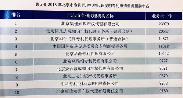 2018北京專利代理年報發布 集佳第五次榮登發明專利申請量榜首
