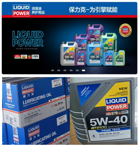 The defendant, LIQUID POWER Company, produces and sells lubricating oils, engine oils, and other products with the logos "", "" and "", and markets them through WeChat Mini Programs, offline partner stores, and other channels (as shown in the following images).