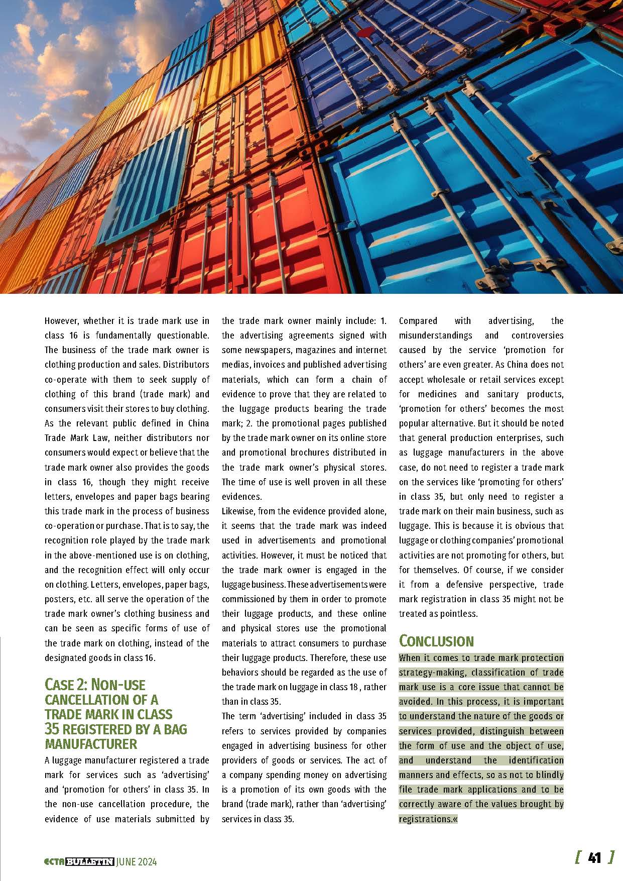 集佳文章《How to Understand the Goods and Services in Chinese Classification from the Perspective of Trade Mark Use》在《ECTA》發表