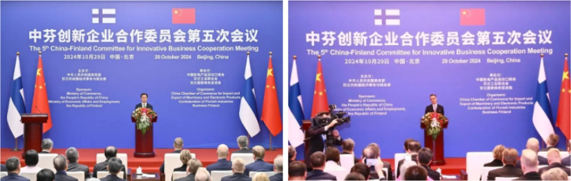 2024年10月29日,由中華人民共和國商務部和芬蘭共和國經濟事務與就業部主辦的中芬創新企業合作委員會第五次會議在人民大會堂隆重召開。中國國家副主席韓正、芬蘭總統斯圖布出席會議。此次會議恰逢芬蘭總統斯圖布就職后首次來華進行國事訪問,旨在加強中芬兩國企業在可持續發展、創新、清潔能源等領域的貿易及投資合作。