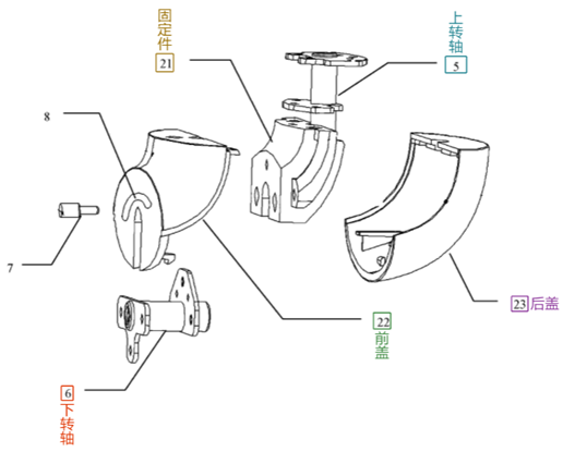 被訴決定認(rèn)為:權(quán)利要求1相對(duì)于證據(jù)1的區(qū)別技術(shù)特征為:轉(zhuǎn)軸、下轉(zhuǎn)軸,所述上轉(zhuǎn)體與所述中轉(zhuǎn)體通過(guò)上轉(zhuǎn)軸轉(zhuǎn)動(dòng)連接,所述中轉(zhuǎn)體與所述手柄通過(guò)下轉(zhuǎn)軸轉(zhuǎn)動(dòng)連接,所述上轉(zhuǎn)軸與下轉(zhuǎn)軸垂直。實(shí)際解決的技術(shù)問(wèn)題為:如何連接上轉(zhuǎn)體、中轉(zhuǎn)體和手柄并實(shí)現(xiàn)多角度調(diào)整。