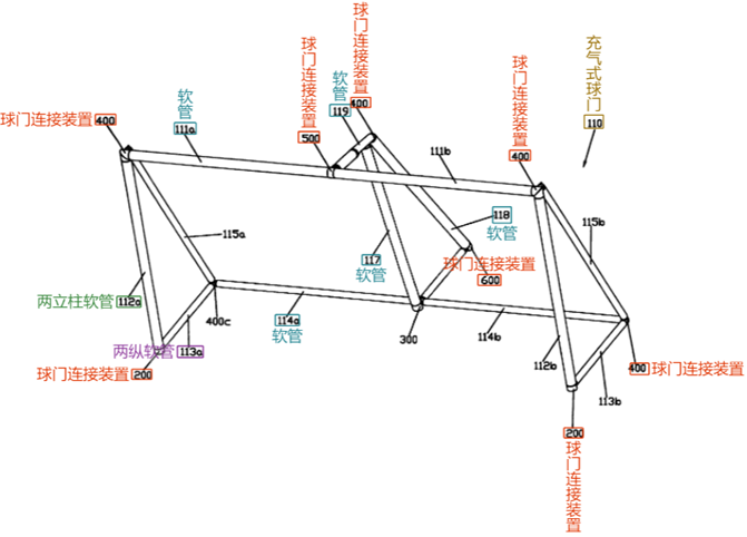 無(wú)被訴決定針對(duì)權(quán)利要求1的創(chuàng)造性主要涉及廣州市毅拓體育用品有限公司(簡(jiǎn)稱毅拓公司)、紹興市太一文具有限公司(簡(jiǎn)稱太一公司)提交的兩份證據(jù),附件1,公開號(hào)為GB2422322A的英國(guó)專利,公開一種充氣運(yùn)動(dòng)球門。附件3,授權(quán)公告號(hào)為CN2230865Y的中國(guó)實(shí)用新型專利,其公開了一種上水管接頭。
