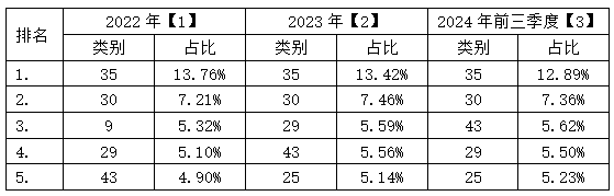 【3】基于國家知識產權局商標局《2024年三季度各省、自治區、直轄市商標注冊申請量、注冊量按類別統計表》