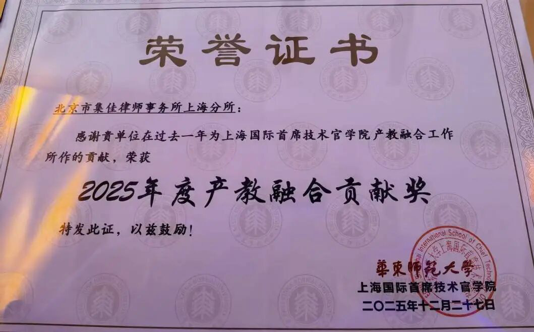 集佳律所上海分所獲頒華東師大CTO學院“產教融合卓越貢獻獎”